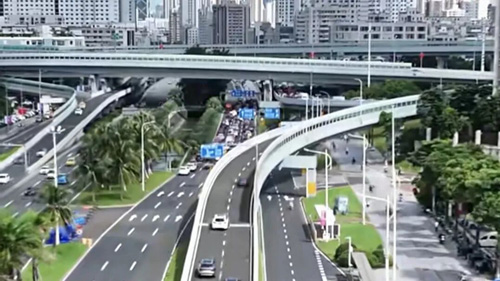 與此同時,海口海秀快速路龍昆南匝道完善工程亦于10月1日上午10:00建成通車。通車前,車輛從龍昆南上海秀快速路需繞行國興大道或海秀路金墾匝道,不僅路程增加,還需多次經過紅綠燈,高峰時段耗時顯著增加;通車后,車輛通過新建的 SW 匝道駛上海秀快速路僅需 1 分鐘通行效率提升超 80%。標志著龍昆南立交全互通格局全面形成,這也是海口市委市政府聚焦民生關切、完善城市路網提升通行效率的又一碩果。